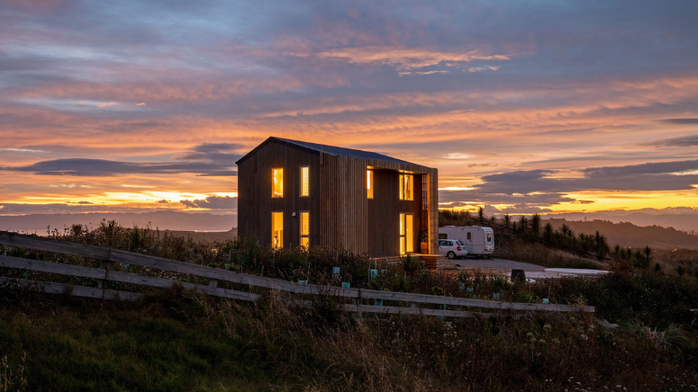 FAB ONE位於紐西蘭北島東岸的吉斯伯恩(Gisborne)山坡上,是一座雙層小型住宅。它展示了永續發展的卓越典範,是屋主、建築師 Bonnifait+Associates Architects 和建築公司 DStevens 的共同合作成果。