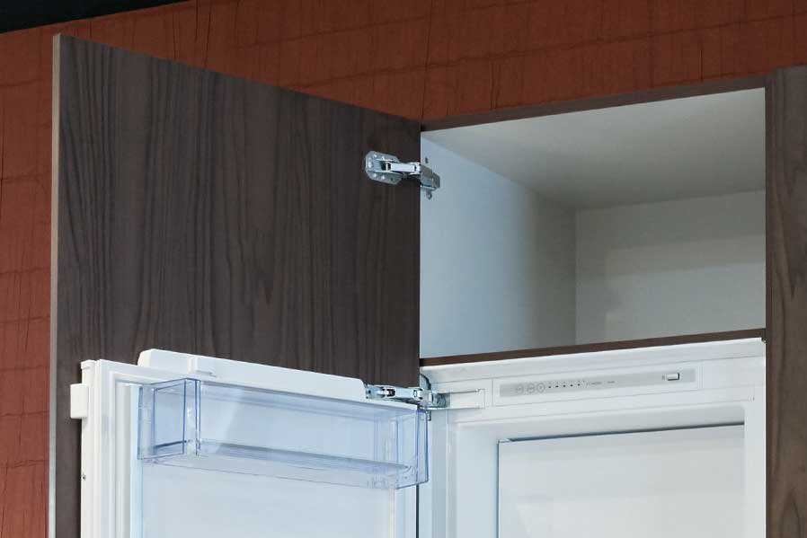 Kamat是一款採用簡約設計的家具鉸鏈,實現門板與嵌入冰箱櫃合一功能,能將門板安穩固定在冰箱門上。 Kamat鉸鍊,即使在門片旋轉時,冰箱及其上方的隔間也能保持穩定的高度。